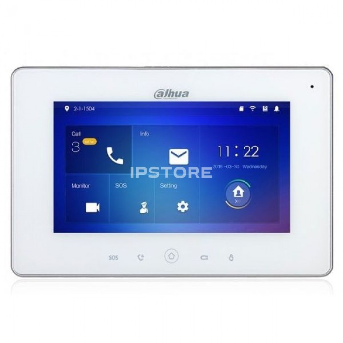 IP-відеодомофон Dahua VTH5221DW-S2 з кольоровим сенсорним 7-дюймовим екраном, підтримкою SIP-сервера, вбудованим Wi-Fi з можливістю переадресації виклику на мобільний телефон, записом кадрів на microSD-карту до 32 Гб, можливістю підключення IP-відеокамери | IP-відеопанелі (всього до 20 каналів). Колір - білий.