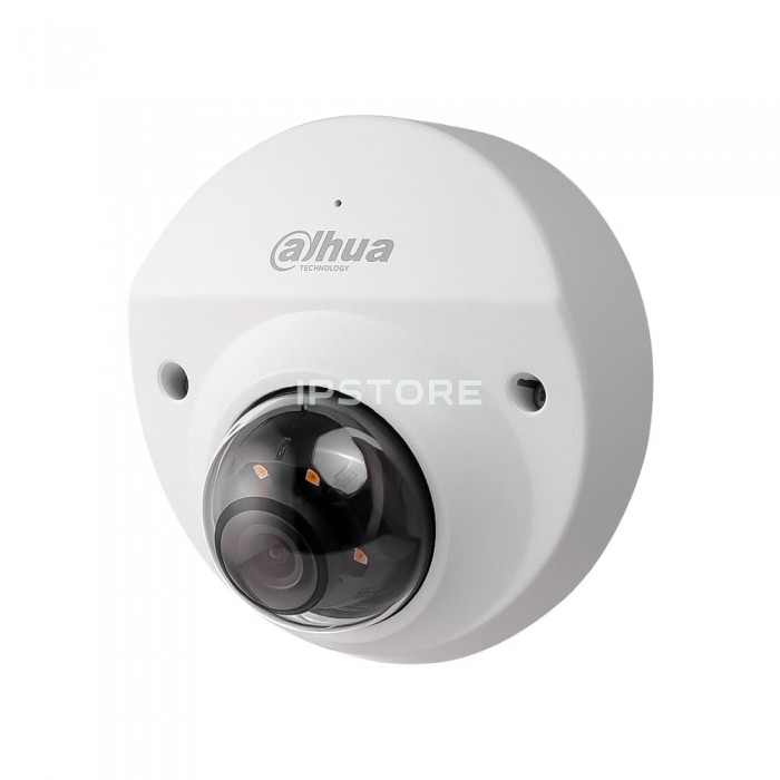 Купольная IP-видеокамера DH-IPC-HDBW2449F-AS-IL (2.8 мм) с разрешением 4 Мп двойной подсветкой и встроенным микрофоном для системы IP-видеонаблюдения. Фиксированный объектив с фокусным расстоянием 2.8 мм и углом обзора по горизонтали 101°.