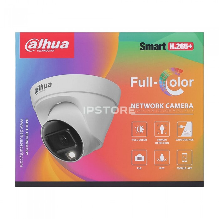 Вулична IP-відеокамера FullColor DH-IPC-HDW1239T1-LED (2.8 мм) з роздільною здатністю 2 Mpx для системи IP-відеоспостереження.