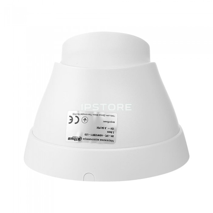 Купольний корпус зовнішньої камери DH-IPC-HDW1239T1-LED (2.8 мм) виконаний з металу і пластику. Клас захисту: IP67 (система класифікації ступеня захисту оболонки електрообладнання), що означає надійний захист внутрішніх компонентів від потрапляння пилу і вологи.