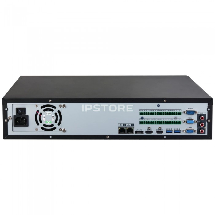 IP-відеореєстратор (NVR) розрахований для підключення до 64-х IP-камер відеоспостереження високої роздільної здатності. Запис відеоархіву ведеться на 8 HDD SATA 3.5" ємністю до 20 ТБ (купуються окремо). Стандарт компресії відео Smart H.265+ / H.265 / Smart H.264+ / H.264 / MJPEG.