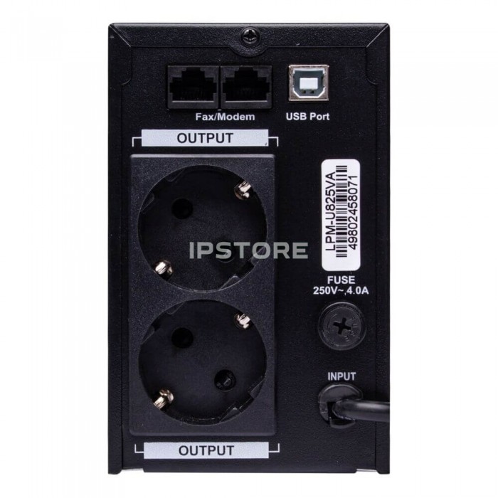 Линейно-интерактивный источник резервного питания с аппроксимированной синусоидой LPM-U825VA с возможностью одновременного подключения двух электрических приборов. LPM-U825VA соединяется с электрической сетью с помощью стандартной евророзетки и стабилизирует входное напряжение (145-290V) до величины 220V±10%. Частотный диапазон составляет 50/60 Hz. Потребляемая мощность – 825VA/577W.