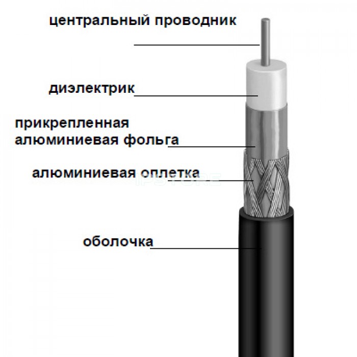 Кабель коаксіальний, обплетення 60%, центр.жила Fe-Cu/d = 1,02 мм, 75 Ом, чорний/білий, бухта 305м.
