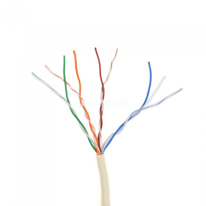 Вісім мідних провідників діаметром 0,51 мм (24AWG) в поліетиленовій оболонці, скручені попарно і мають кольорове маркування для зручності монтажу.