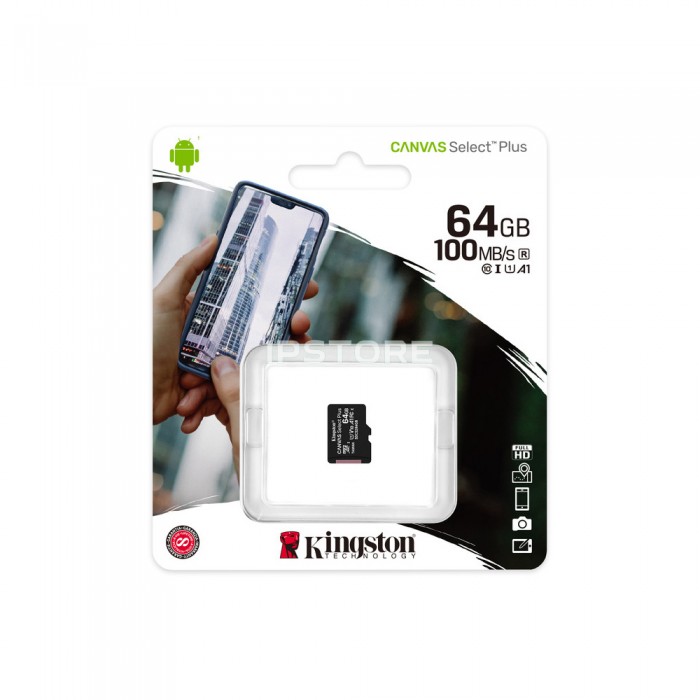 Карта пам'яті Kingston microSDXC 64GB Canvas Select Plus знадобиться в першу чергу користувачам смартфонів і планшетів, вона відповідає вимогам класу продуктивності для застосунків A1 і не буде "вузьким місцем" під час старту застосунків і відкривання файлів.