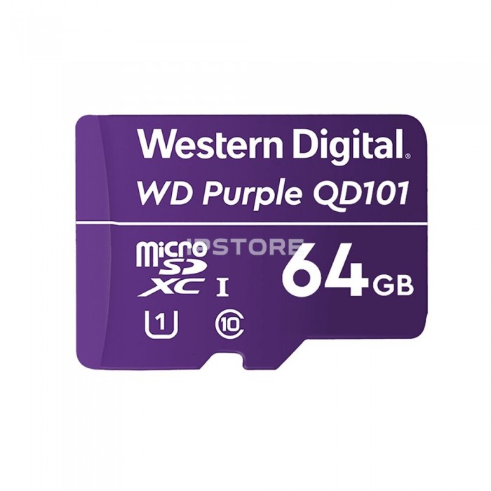 Карта пам'яті для відеонагляду MICRO SDXC 64GB UHS-I WDD064G1P0C WDC підвищеної стійкості. Карта використовується як змінний носій для пристроїв відеоспостереження, включаючи розумні камери охоронних систем. Розрахована на роботу в режимі 24x7 і уможливлює тривалий запис навіть у разі непередбаченого відключення від сервера.