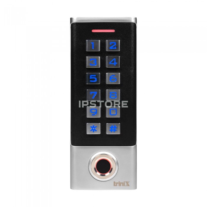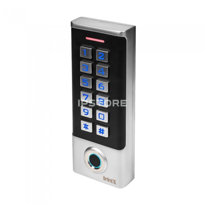 Автономна клавіатура/контролер Trinix TRK-1102MFW, зі скануванням відбитків пальців і зчитувачем Mifare 13.56 МГц. Підтримується декілька способів доступу: за допомогою сканування відбитку пальця / коду доступу / зчитування карти. Металевий антивандальний корпус, клас захисту IP65, підходить для вуличного встановлення.