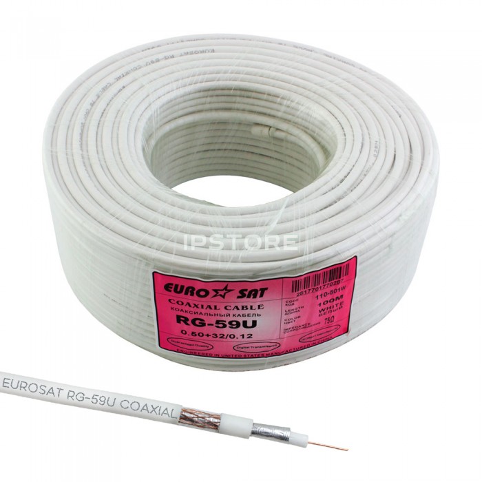 Коаксиальный кабель RG-59 EUROSAT 3C2V-/32CCa белый 100м