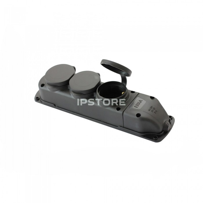 Колодка подвійна ERKA 6003 з заглушками 3 х 16 А (каучук)
