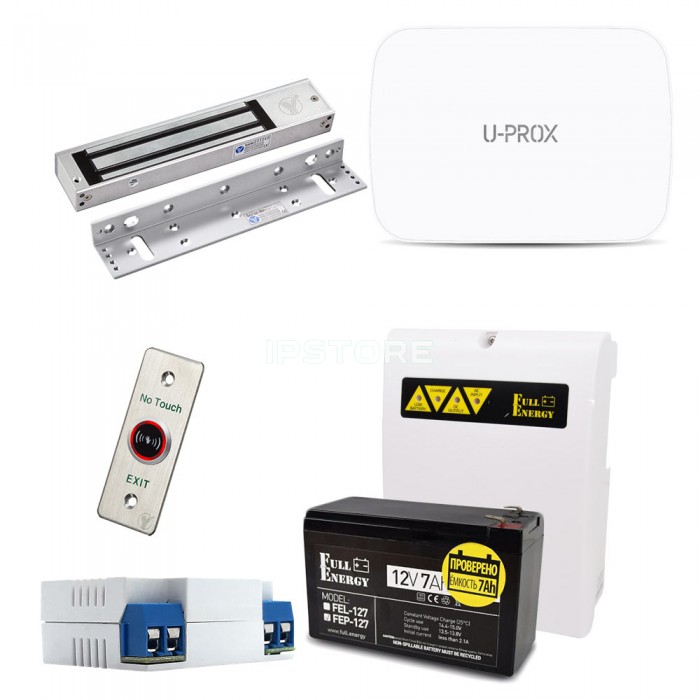 централь, реле, кнопка виходу, замок, монтажний куточок, блок безперебійного живлення, акумулятор