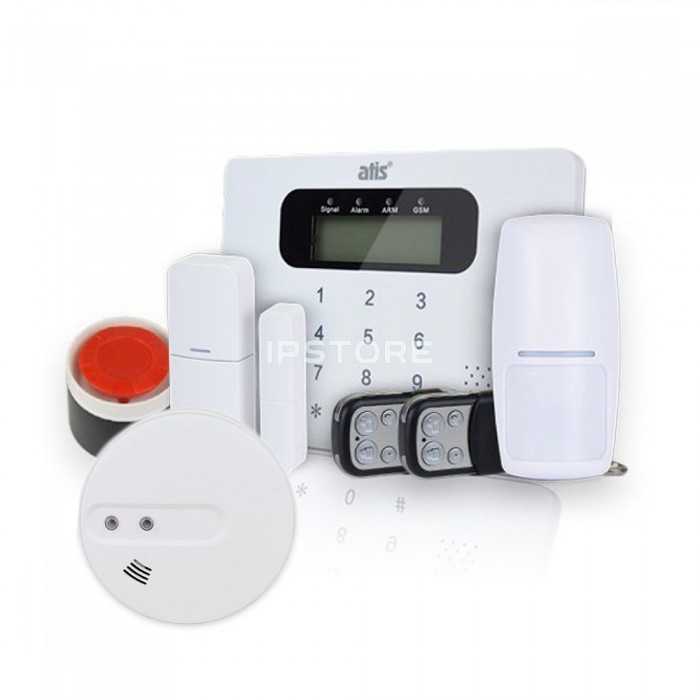 Завдяки широкому набору датчиків, які входять в комплект постачання (датчик руху, відчинення дверей, датчик диму, сирена), GSM-сигналізація ATIS Kit-GSM100 «з коробки» готова для забезпечення ефективної охорони квартири, котеджу, дачі, гаража або офісу.