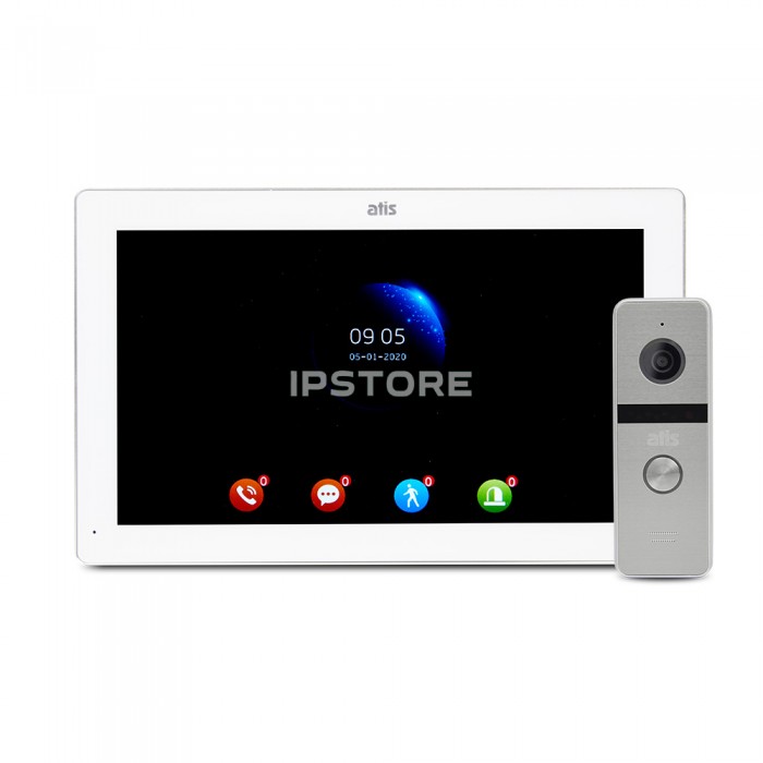 Комплект відеодомофон і панель виклику ATIS AD-1070FHD White + AT-400HD Silver. Складається з кольорового відеодомофона білого кольору з сенсорним IPS екраном 10 дюймів і кольорової панелі виклику сріблястого кольору з ...
