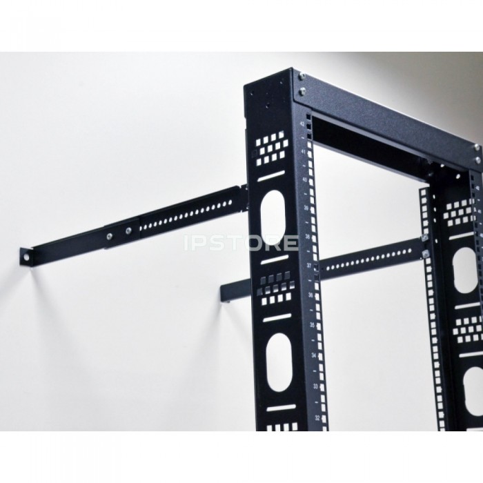 Застосовують для збільшення вертикальної стійкості однорамних стійок. Рекомендується використання в разі довгостроковго встановлення серверної стійки або при монтажі устаткування глибиною більше 300 мм. Для фіксації до цегляної / бетонної стіні використовують металеві анкера, для гіпсокартону рекомендується використовувати розпірні дюбелі Моллі. До рами стійки фіксатори кріпляться в пази юнітного кріплення висотою 1U (1 юніт), розташовані на бічній частині вертикальних напрямних.