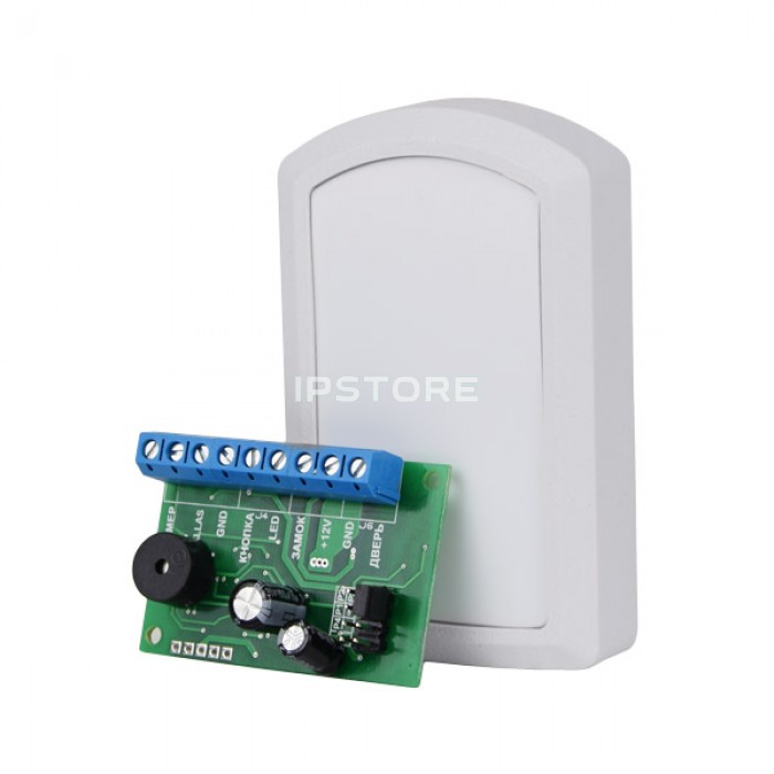 Используется в системах контроля и управления доступом. Прибор способен считывать индивидуальный код карты, брелока, браслета с меткой RFID и передавать его контроллеру.