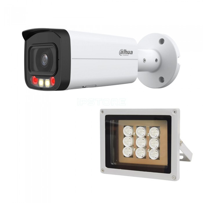 Комплект: IP-відеокамера 4 Мп Dahua DH-IPC-HFW2449T-AS-IL (3.6 мм) з подвійним підсвічуванням + ІЧ-прожектор Lightwell LW9-100IR45-220