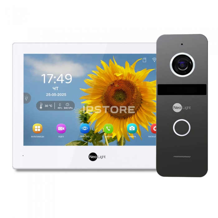 домофон Neolight ALPHA Hybrid white оснащений кольоровим IPS-екраном з діагоналлю 8 дюймів та роздільною здатністю 1280*800 пікселів;