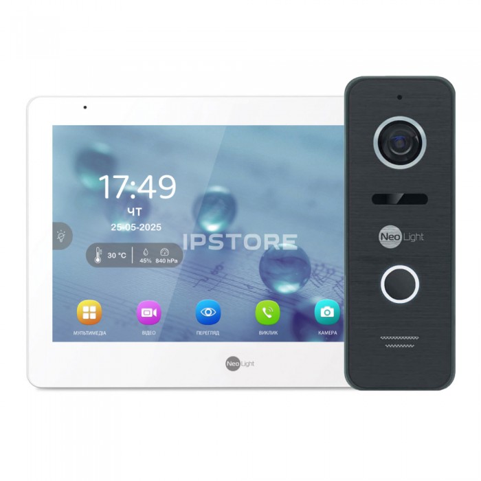 домофон Neolight MEZZO Hybrid white оснащений кольоровим IPS-екраном з діагоналлю 10.1 дюймів та роздільною здатністю 1280*800 пікселів;