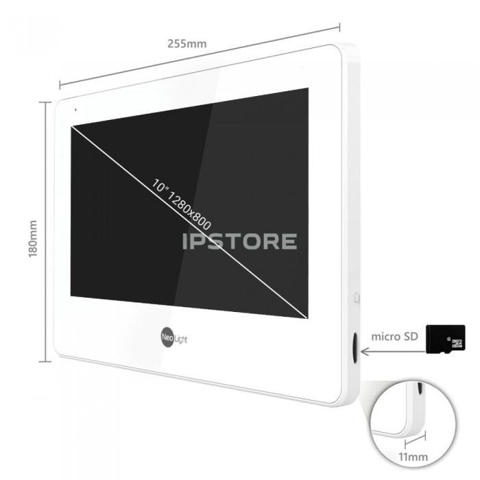 домофон Neolight MEZZO Hybrid white оснащений кольоровим IPS-екраном з діагоналлю 10.1 дюймів та роздільною здатністю 1280*800 пікселів;