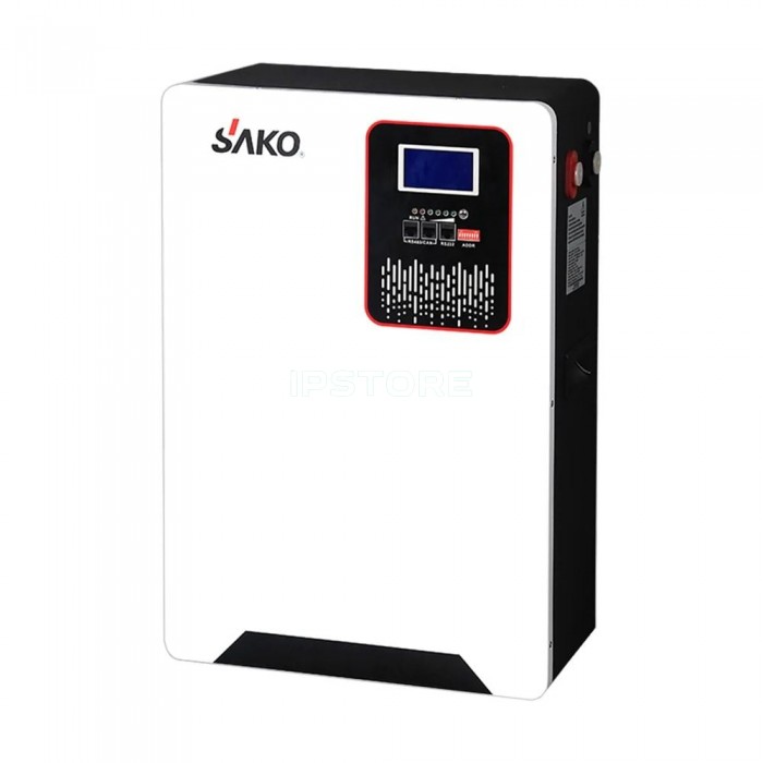 Комплект резервного живлення Sako: гібридний інвертор 6.5kVA/6.2kW SUNON V 48V+120A MPPT й акумуляторна батарея 51.2В 6144Втг Li-Sun series LiFePo4. Гібридний однофазний інвертор; максимальна потужність 6.5 кВА/6.2 кВт, максимальна короткочасна потужність 12.4 кВА; правильна синусоїда на виході 220 В; вбудований MPPT-контролер та мережевий зарядний пристрій; максимальний струм заряду 120 А; вхідна напруга 90-280 В; діапазон напруги від сонячних панелей 60-450 В, макс. потужність 6000 Вт; ККД 93%; вихідна напруга 230 В ±5%; вихідна частота 50/60 Гц; напруга акумуляторної системи 48 В; час перемикання на АКБ 10 мс; підтримка заряду АКБ типу AGM/GEL/LiFePo4/Li-ion; вбудований локальний WiFi – лише для моніторингу з мобільного застосунку; LCD-дисплей; функція «холодного» пуску; режим підмішування; захист від перевантаження, короткого замикання, перегріву; робоча температура 0°C~+50°C; розміри 583 / 380 / 214 мм, вага 10.4 кг. Настінна літій-залізо-фосфатна акумуляторна батарея для системи накопичення енергії; напруга 51.2 В; ємність 120 Аг, потужність 6144 Втг; максимальний струм заряду/розряду 50 А/100 А; ресурс: 6000 циклів заряджання-розряджання; комунікаційні порти CAN, RS485; клас захисту IP20; в одну систему можна підключити до 15 акумуляторних модулів; розміри 641 / 389 / 179 мм; вага 54.5 кг