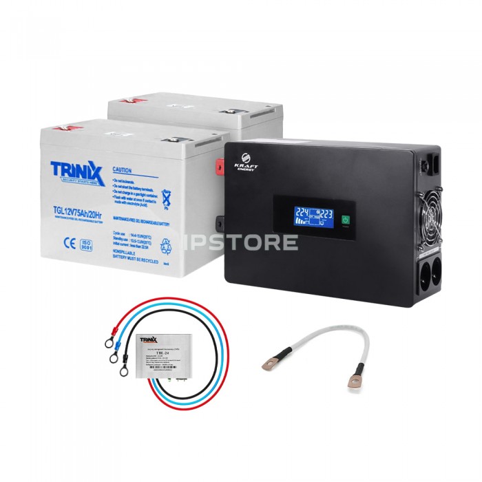 Комплект резервного питания: высокочастотный инвертор 1500VA/1.5kW Kraft + аккумуляторная батарея Trinix 12V75Ah/20Hr GEL 2 шт.
