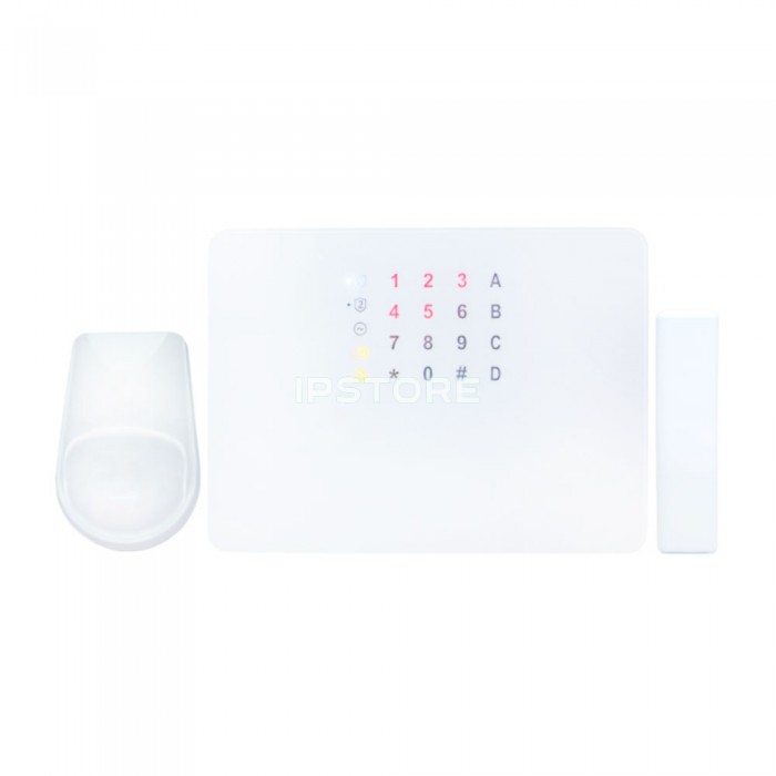 Данный комплект позволяет организовать 2 охранные группы, с поддержкой до 17 проводных зон (5 на плате ППК, еще 12 подключаются с помощью модулей расширения). Встроенная клавиатура управляет режимами охраны. С помощью входящего в комплект радиоприемника Lun-R к ППК можно подключить до 30 беспроводных датчиков. Lun-R устанавливается на плате ППК. Беспроводные датчики из поставки работают на частоте 433 МГц. Датчик движения позволяет обнаружить движение в охраняемой зоне и передать сигнал о тревоге на ППК, геркон разработан для обнаружения открытия дверей/окон.