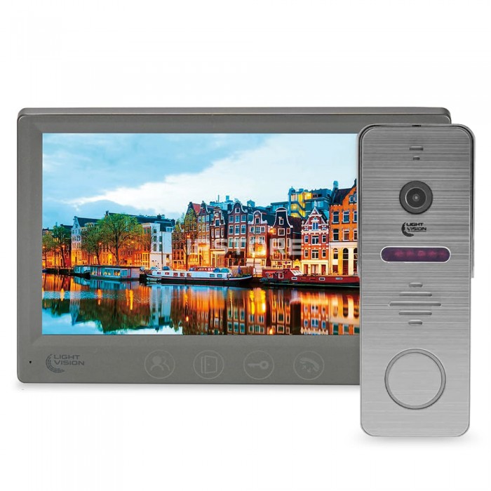 Комплект відеодомофону Light Vision з відеокамерою: домофон 7" AMSTERDAM FHD Grey, відеопанель 2Mp RIO FHD Grey, MHD-відеокамера 2Mp VLC-1192WFM Graphite