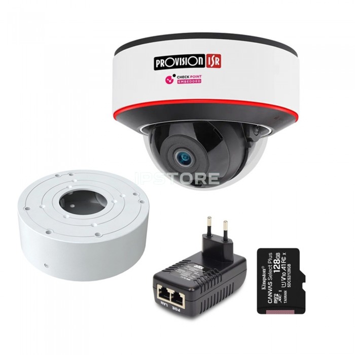Комплект відеоспостереження біля під'їзду, Provision-ISR - це готове рішення для організації відеоспостереження у під'їздах житлових будинків, офісних будівель та невеликих комерційних об'єктів. Камера Provision-ISR DAH-340IPSN-28 забезпечує чітке кольорове зображення в будь-яку годину доби, захищена від вандалізму та вологості, а вбудовані базові аналітичні функції дозволяють розпізнавати людей та транспорт. У комплект входять комутаційний бокс для зручного монтажу, картка пам'яті на 128 Гб для локального запису та PoE-інжектор для передачі даних та живлення по одному кабелю. До складу комплекту входять: IP-відеокамера 4 Мп Provision-ISR DAH-340IP підсвічуванням та DDA1 аналітикою