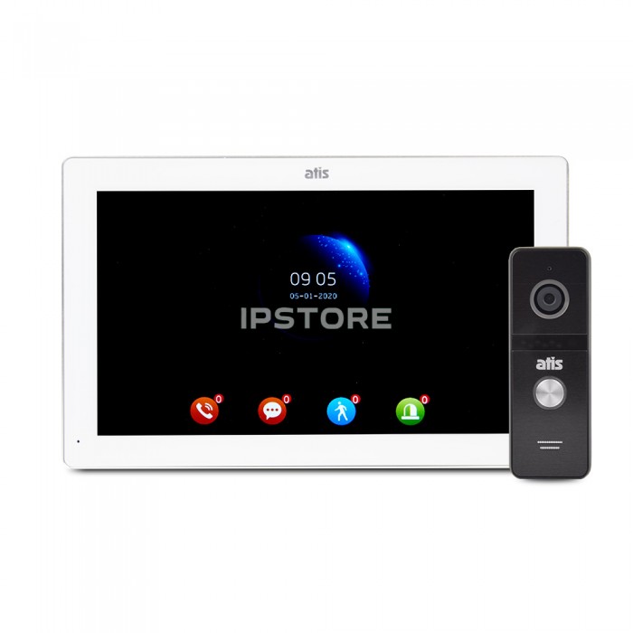 Комплект відеодомофон і панель виклику ATIS AD-1070FHD White + AT-400FHD Black. Складається з кольорового відеодомофона білого кольору з сенсорним IPS екраном 10 дюймів і кольорової панелі виклику чорного кольору з розд...