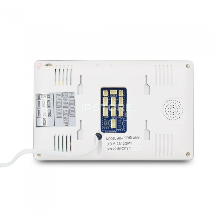- домофон AD-770FHD/T-White оснащен цветным IPS-экраном с диагональю 7 дюймов и разрешением 1024*600 пикселей;