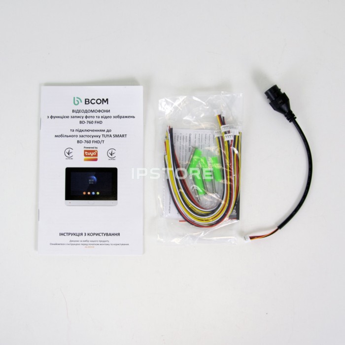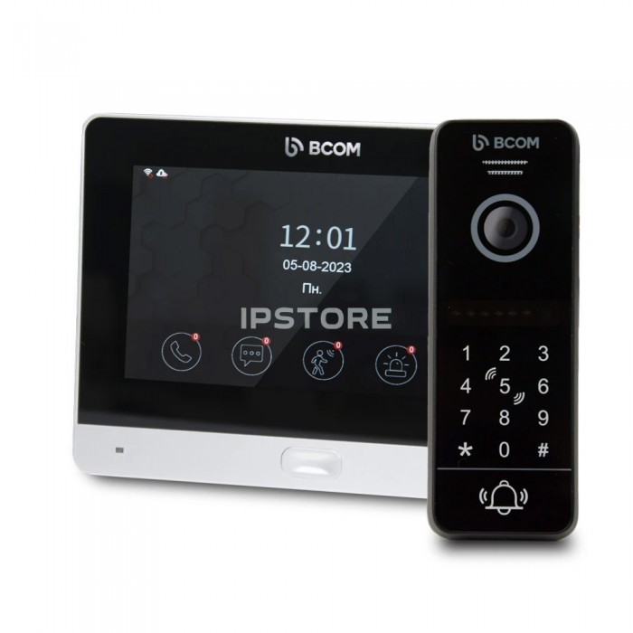 Відеодомофон BCOM BD-760FHD/T White з кольоровим сенсорним 7-дюймовим IPS-екраном з підтримкою Tuya Smart (переадресація виклику і керування зі смартфона) і вбудованим Wi-Fi модулем. Можливості підключення: 2 Full HD (AHD/TVI/CVI) | аналогові панелі виклику; 2 Full HD (AHD/TVI/CVI) | аналогові відеокамери; 2 датчики тривоги; 1 додатковий монітор (телевізор). Інтерком на 6 відеодомофонів. Колір - білий. Бренд BCOM.ЯК ПРАЦЮЄ ДОМОФОН з Tuya SmartЗавдяки бездротовому Wi-Fi з'єднанню і встановленню на мобільний пристрій застосунку Tuya Smart, можна віддалено із застосунку:переадресувати виклик з підключеної панелі на смартфон і подивитися, хто до вас прийшов;відмикати підключений електрозамок;віддалено передивитися архів запису;змінювати налаштування відеодомофона.Але найголовніше – всі пристрої, що підтримують Tuya Smart, можна об'єднати в одну екосистему і створювати сценарії керування розумним будинком: наприклад, відмикати підключений до домофонної системи електрозамок і вмикати за допомогою розумної розетки кондиціонер. І все це – за допомогою декількох кліків в застосунку.ДЕ ВИКОРИСТОВУЄТЬСЯ ВІДЕОДОМОФОН Відеодомофон BCOM BD-760FHD/T White призначений для забезпечення безпечного і контрольованого доступу в квартиру, приватний будинок, офіс або інше житлове або робоче приміщення. ФУНКЦІОНАЛ ВІДЕОДОМОФОНА BCOM BD-760FHD/T White до домофона можливо підключити одночасно 2 Full HD (AHD/TVI/CVI) | аналогові панелі виклику і 2 Full HD (AHD/TVI/CVI) | аналогові відеокамери, 2 датчики тривоги, 1 додатковий монітор (або телевізор) з НЧ входом, також паралельно ще + 5 відеодомофонів; домофон BD-760FHD/T White обладнано кольоровим IPS-екраном з діагоналлю 7 дюймів і роздільною здатністю 1024*800 пікселів; підтримка підключення через WiFi і роботи з мобільним застосунком Tuya Smart – переадресація виклику у застосунок на смартфоні; розмова з відвідувачем здійснюється в режимі гучного зв'язку (HandsFree); керування домофоном відбувається за допомогою сенсорного екрану; слот на microSD карту (купується окремо); запис фото/відео за рухом з 1 каналу, за тривогою (за умови підключення охоронних датчиків), а також автоматично і вручну; інтерком на 6 відеодомофонів; вибір мелодії для кожної панелі виклику. ЗАПИС ФОТО І ВІДЕО Запис фото/відео зі звуком здійснюється на MicroSD карту. В режимі розмови запис фото/відео відбувається автоматично, також можна зробити запис вручну. Фото можна також зберігати на внутрішню пам'ять. Також в домофоні BCOM BD-760FHD/T White є запис за рухом (фото або відео, в залежності від обраних налаштувань). Запис за детектором руху можна зробити по 1 каналу. За наявністю підключених датчиків тривоги можна активувати в меню запис за тривогою фото або відео відвідувачів. Архів записаного фото/відео можна переглядати на відеодомофоні, на який відбувався запис, або на ПК з MicroSD. ФУНКЦІОНАЛ ІНТЕРФЕЙСУ ДЛЯ КОРИСТУВАЧА Інтуїтивно зрозуміле меню відеодомофона BD-760FHD/T White дозволить легко налаштувати конфігурацію системи: обрати мову системи; налаштувати мелодію і гучність дзвінка, тривалість дзвінка; обрати режим запису Фото/Відео; увімкнути або вимкнути детектор руху; увімкнути запис відеоповідомлення від відвідувачів (тільки за умовою встановлення MicroSD карти); встановити спосіб запису за тривогою (фото/відео), тривалість тривожного сигналу; налаштувати яскравість, контрастність і кольоровість екрану; відформатувати SD-карту. ЕЛЕМЕНТИ КЕРУВАННЯ ВІДЕОДОМОФО