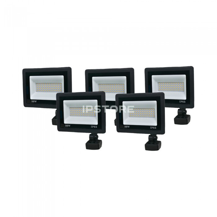 Комплект із 5 світлодіодних прожекторів Lightwell 50W з датчиком руху (LW-FL-B-50-S)