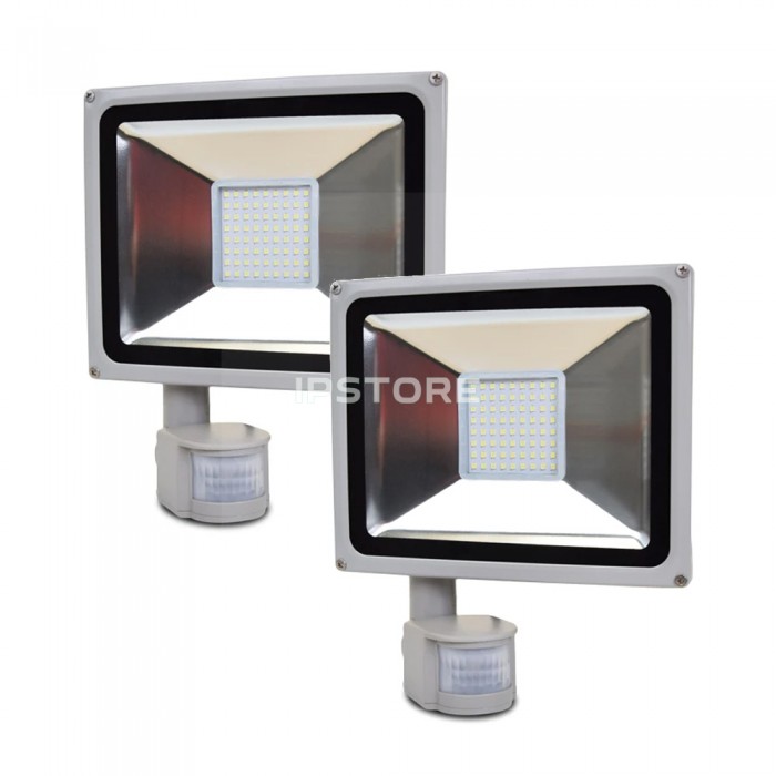 Комплект з двох LED-прожекторів Lightwell LW-50W-220PIR потужністю 50W з датчиком руху. LED-прожектор застосовується для освітлення як усередині, так і зовні приміщення. Завдяки світлодіодній матриці, встановленій у прожекторі, має більш низьке споживання струму, більший термін служби, стійкість до короткочасних перепадів напруги, а також перепадів температур порівняно з галогеновим.