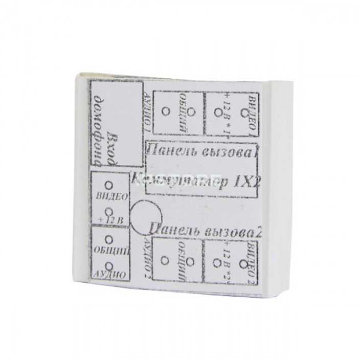 Комутатор панелей виклику, призначений для підключення до 1 виходу відеодомофона 2-х панелей виклику. При виклику з панелі через комутатор вона підключається до відедомофону і працює в штатному режимі