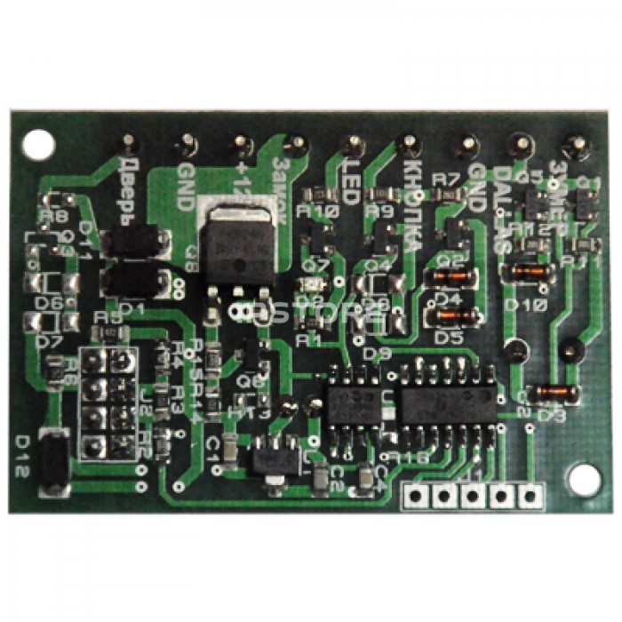 Замок – в якості замка може бути використаний електромагнітний замок або інвертована защіпка. При наданні доступу контролер знімає живлення з замка. Для здійснення керування електромеханічним замком або електромагнітною защіпкою прямої дії потрібно встановити джампер в положення 4. Тоді контролер у стані «відчинено» подаватиме живлення на замок. Обов'язково використання захисного діода паралельно контактам замка (діод підключається в зворотній полярності). Підходять діоди 1N5408, 1N5821, HER301 і аналогічні. Діод можна встановити безпосередньо на контактах контролера.