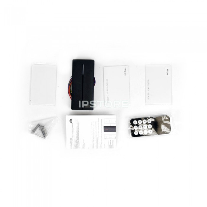 контроллер-считыватель, 2 мастер-карты, пульт управления, крепежный комплект, инструкция