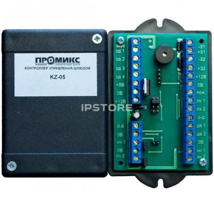 Автономний контролер KZ-05 для керування проходом через одну точку доступу, що представляє собою двоє дверей із замкнутим простором між ними (шлюз). Дозволяє організувати електро-механічне блокування дверей шлюзу за заданим алгоритмом.