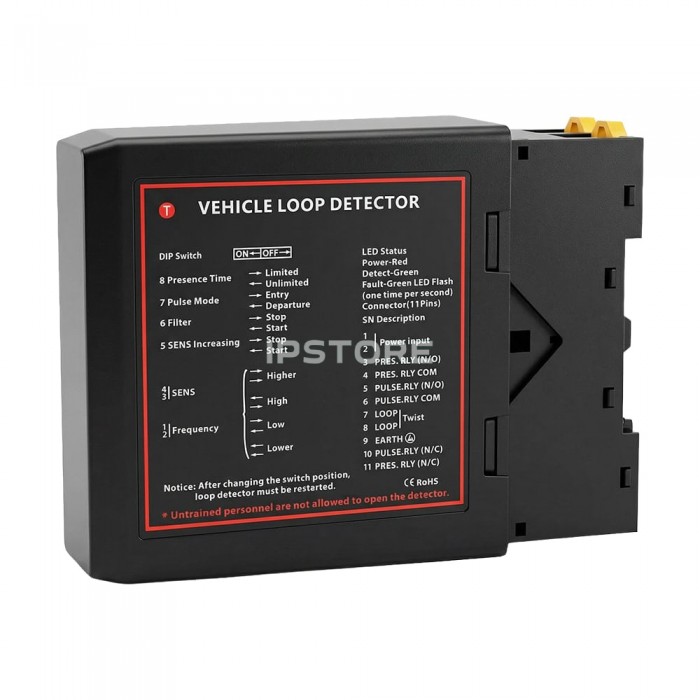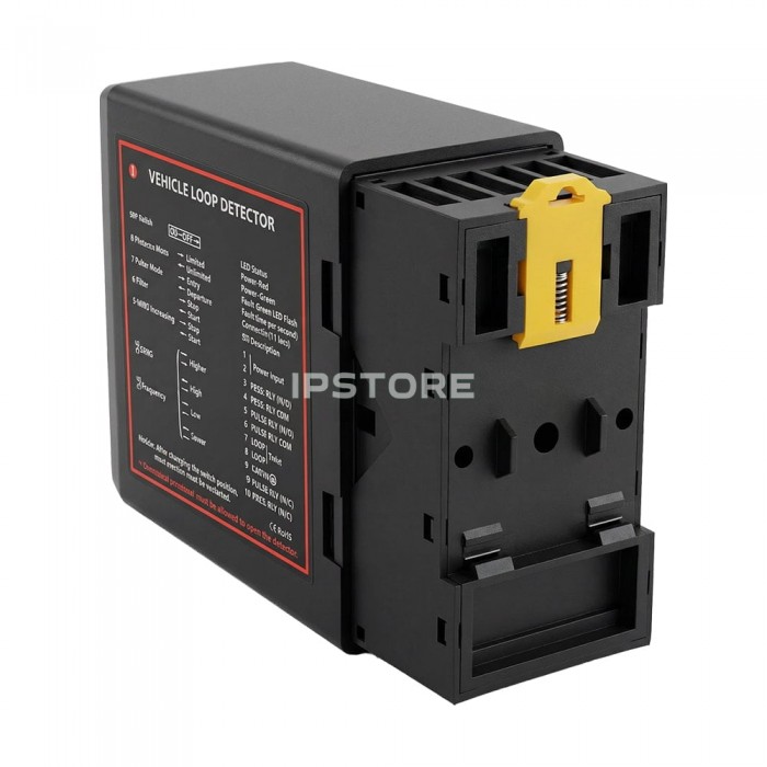 Одноканальний контролер індукційної петлі; індуктивність шлейфа 80-1000 мкГн; 4-рівневе налаштування чутливості; 2 релейні виходи; час відгуку 10 мс; функція постійної присутності, ручне скидання; робоча напруга AC 110/220 В+10% 50/60 Гц; DC 12/24 В; встановлення на DIN-рейку; діапазон робочих температур -20°С…+65°С; пластиковий корпус; габаритні розміри 75 / 40 / 105 мм