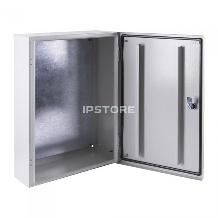 Маючи стандартний ступінь захисту IP54, цей корпус забезпечує достатній захист від зовнішніх впливів, що робить його придатним для використання в різних умовах, включно з промисловими середовищами. Монтажна панель входить до комплекту, що спрощує процес встановлення обладнання та елементів керування всередині шафи.