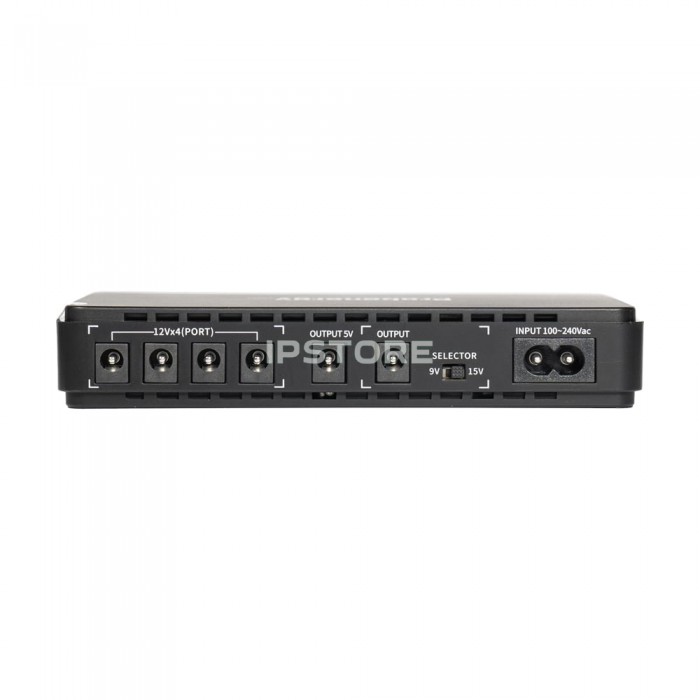 - Вихідні інтерфейси USB, 6* DC, вихідна напруга 5 В (USB/DC1) + 9/15 В (DC2) – перемикається + 12 В (DC3). Вихідна напруга та струм кожного виходу: USB/DC1: 5В/2.5А, DC2: 9В/2А, 15В/1.6А, DC3-6: 12В/2А