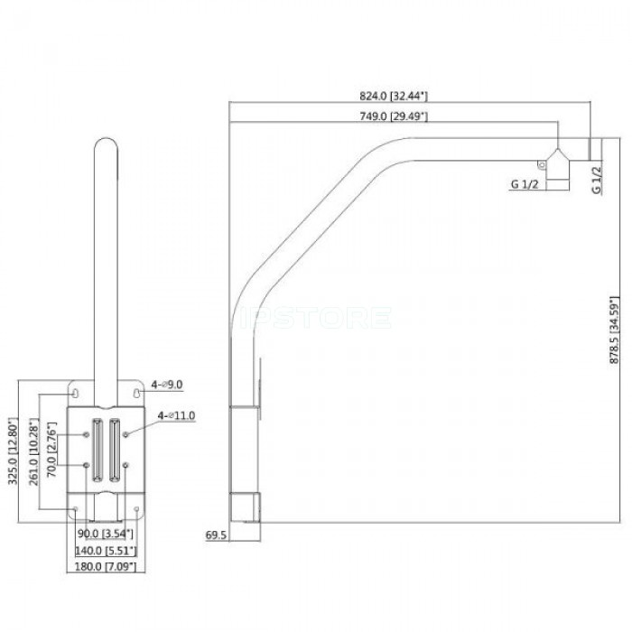 Виносний кронштейн. Матеріал: алюміній та нержавіюча сталь; Завантаження: до 7кг; Вага: 4,3 кг; Розмір: 879х836х180 мм