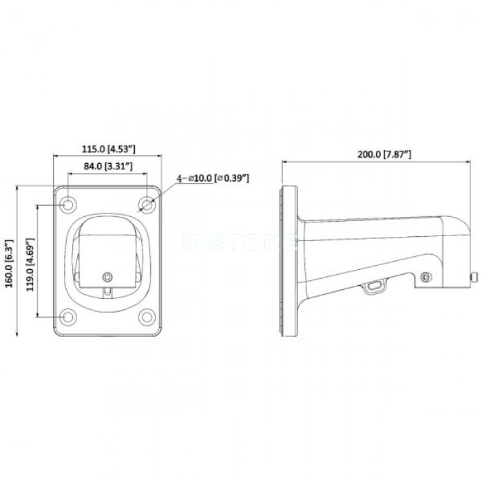 Кронштейн для настінного кріплення Матеріал: алюміній; Монтаж на стіну; Завантаження: до 5 кг; Вага: 870г; Розмір: 200х160х115 мм...