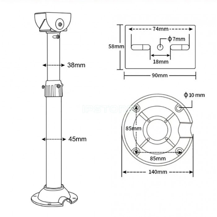 Гнучкість налаштування: Верхній монтажний майданчик оснащений поворотним механізмом з кутом нахилу 180° в одній площині. Це дозволяє закріпити камеру під потрібним кутом для максимального охоплення території.