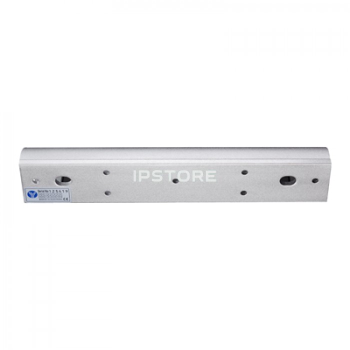 Комплект, що складається з електромагнітного замка YM-180 з силою утримання до 180 кг на розрив і куточка монтажного MBK-180L. Комплект призначений для внутрішнього встановлення на вузькі важкі металеві, металопластикові, дерев'яні двері. Бренд Yli Electronic. Що таке електромагнітний замокЕлектромагнітний замок – пристрій для зачинення дверей, принцип роботи якого заснований на магнітній взаємодії. Складається з корпусу з електромагнітом і відповідної планки з металу з високою магнітною проникністю. Як працює електромагнітний замок YM-180Електромагнітний замок встановлюється на дверну коробку, відповідна планка - на двері. При подачі живлення (DC 12 В) – замок примагнічує відповідну планку, надійно замикаючи двері. При відсутності живлення - замок відмикається, що відповідає вимогам протипожежної безпеки. Для компенсації удару при зачиненні дверей, на відповідній планці передбачена гумова прокладка. Технічні характеристики електромагнітного замка YM-180Сила утримання: 180 кг Матеріал корпусу: анодований алюміній Матеріал відповідної частини: цинк Живлення: DC 12 В Споживання: DC 12 В / 300 мАРозміри: замок: 170 х 35 х 20 ммз кріпильної планкою: 170 х 41.5 х 20 мм відповідна планка: 130 х 33 х 10 мм Встановлення електромагнітного замкаВідповідна планка Наклейте трафарет в місці встановлення відповідної частини на дверіЗ зовнішньої частини дверей просвердліть отвір (відповідно до інструкції, але не до кінця!), і два неглибоких отвори з внутрішньої сторони дверей для фіксації відповідної планкиЗакріпіть відповідну частину, встановивши болт з напівкруглою гладкою головкою із зовнішнього боку дверей. З внутрішньої сторони покладіть гумову прокладку і вже на неї встановіть відповідну частину. Зафіксуйте гайку за допомогою шестигранного ключа ВАЖЛИВО! Не сильно затягуйте гайку відповідної планки – вона повинна трохи пружинити завдяки гумовій прокладці, для правильного і вільного прімагнічіванія до замка. Кріпильна планка замка Закріпіть кріпильну планку електромагнітного замка в верхньому кутку коробки, використовуючи саморізи з комплекту Електромагнітний замок Прикладіть електромагнітний замок до кріпильної планки і прикрутіть два шурупи (внизу замка) за допомогою маленького шестигранного ключа Підключення живлення(+) до червоного дроту;(-) до чорного дротуВстановлення кронштейна MBK-180L Прикріпіть кронштейн до корпусу електромагнітного замка за допомогою двох гвинтів Зробіть розмітку для кріплення на місці передбачуваного встановлення Просвердлите отвори відповідного діаметру Прикріпіть кронштейн на обране місце..