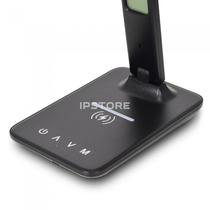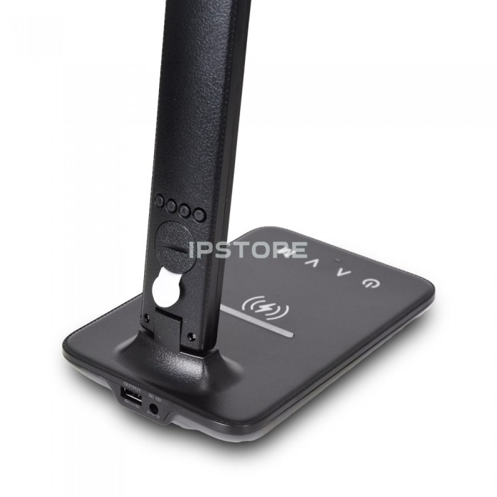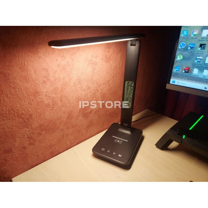 Настільна світлодіодна лампа Mealux DL-430 у чорному виконанні це дивовижне поєднання сучасних технологій і функціонального дизайну. Основну увагу привертає вбудована бездротова зарядка потужністю 10W, що забезпечує зручність зарядки вашого смартфона, який підтримує стандарт QI. Просто помістіть пристрій на панель, і процес заряджання активується автоматично.