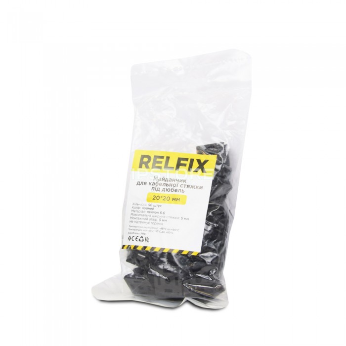 Монтажний комплект: Стяжка Relfix 4 x 250 мм (100 шт/уп) чорна + Майданчик для стяжки під дюбель 13 x 18 мм чорна (100шт) + Дюбелі швидкого монтажу 6 x 40 мм потай (100 шт/уп)