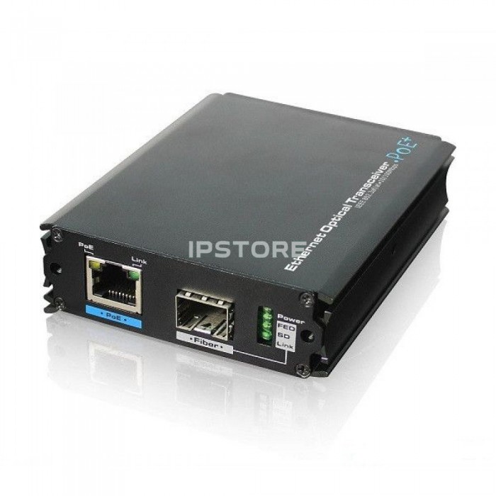 Призначений для передачі сигналу Ethernet через оптичне волокно. Пристрій конвертує сигнал з мережевого кабелю і передає через оптичне волокно, має вбудований PoE-інжектор. Використовується для підключення PoE IP-камер і передачі даних на великі відстані по оптичному волокну. Застосовується в системах відеоспостереження, для проектування складних мереж.