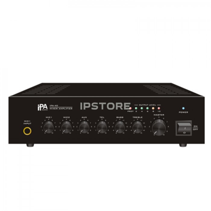 Микширующий усилитель IPA-40 входит в состав системы оповещения IPA AUDIO и используются для построения систем автоматического оповещения о пожаре и музыкальной трансляции на базе дополнительного оборудования. Данный блок предназначен для микширования и усиления звукового сигнала с целью его дальнейшей трансляции на громкоговорители.