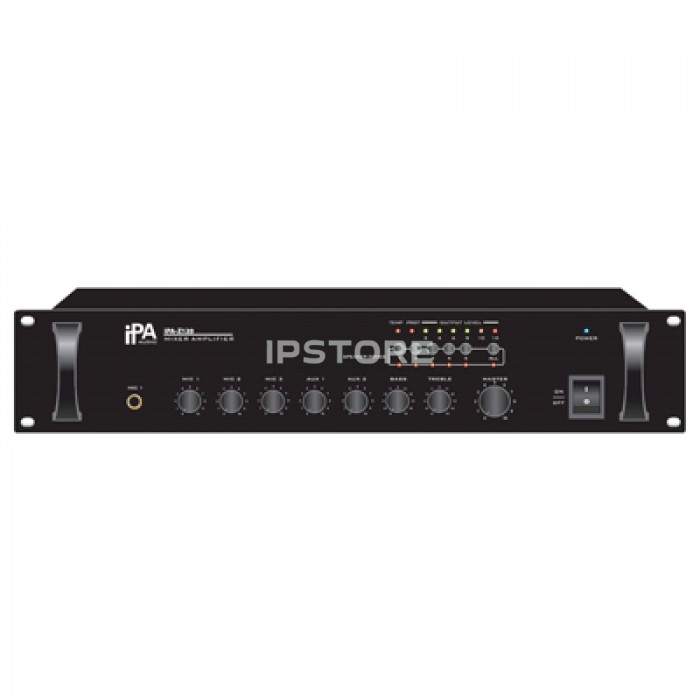 Мікшируючий підсилювач з вбудованим MP3-програвачем, тюнером і пультом дистанційного керування. Блок для настільної установки або кріплення в стійці. Номінальна вихідна потужність - 60 Вт. Виходи гучномовців - 100 В / 70 В / 4-16 Ом. Входи для SD і USB на передній панелі, 1 VFD-дисплей для програвача і тюнера, 1 мікрофонний вхід комбінованого типу на задній панелі і типу jack на передній панелі, 1 лінійний вхід (AUX) типу RCA...