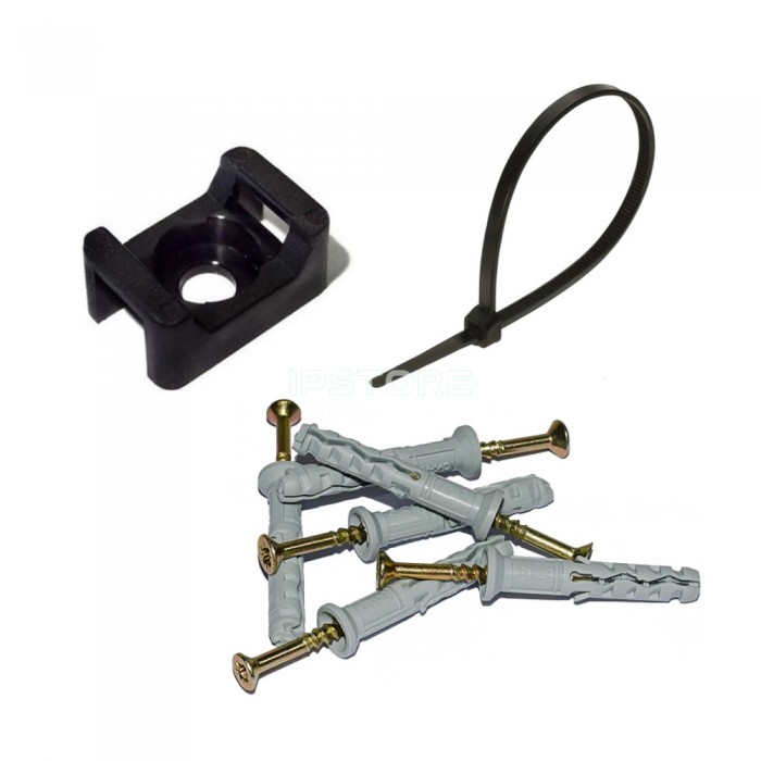 Монтажний комплект: Стяжка Relfix 4 x 250 мм (100 шт/уп) чорна + Майданчик для стяжки під дюбель 13 x 18 мм чорна (100шт) + Дюбелі швидкого монтажу 6 x 40 мм потай (100 шт/уп)
