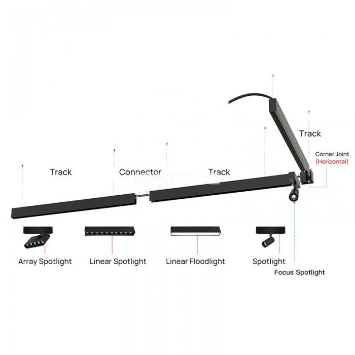Магнітний трек (шинопровід): алюмінієвий профіль, який одночасно служить платформою для монтажу та провідником живлення.